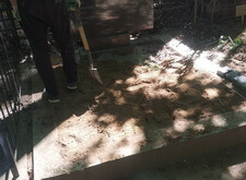 В первую очередь демонтируем цветник и поправляем памятник